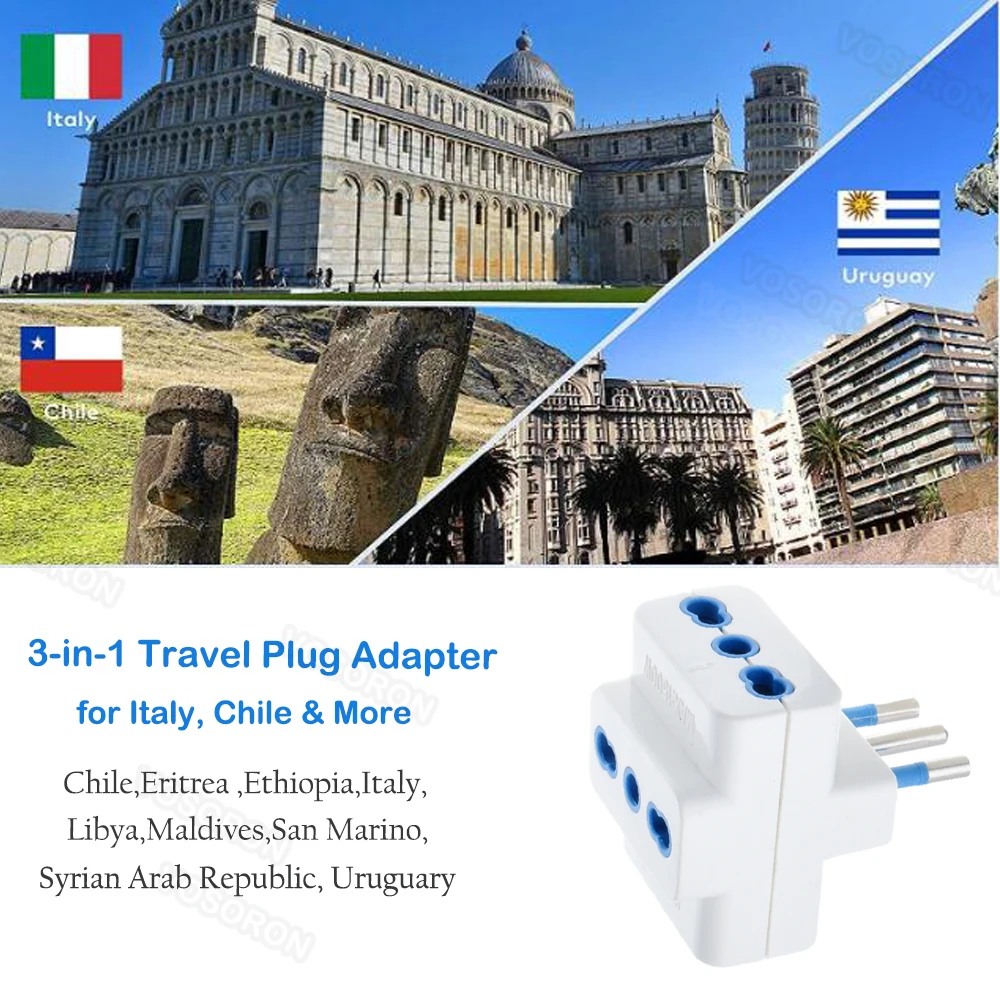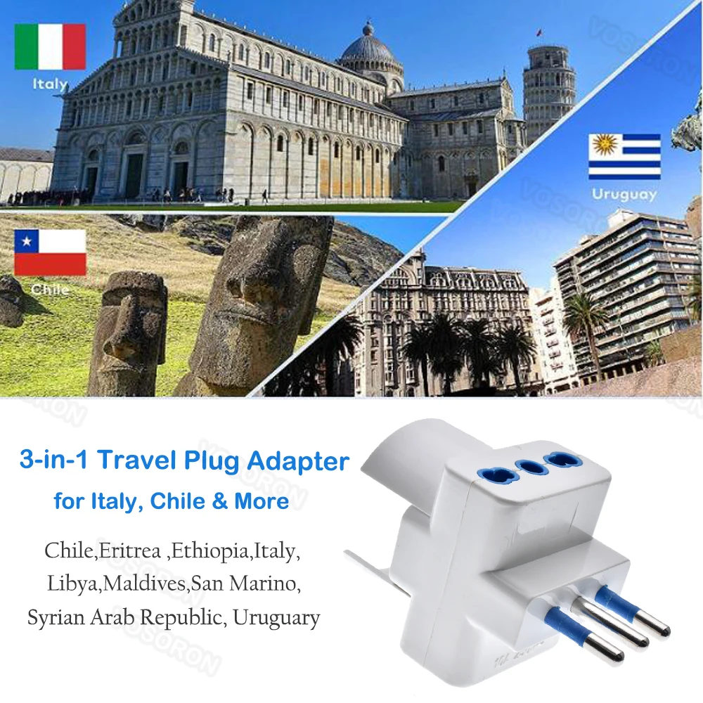 Adattatore da Viaggio per Prese in Italia, Multipresa a 3 Vie, Uscita Multi-Porta Standard Italiano 10A 250V.